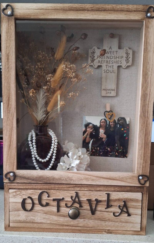 Natural wood shadow box with your custom design